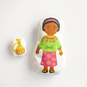 Kit includes: cotton printed fabric panel with instructions, hypoallergenic stuffing, pins, needles and scissors for hand sewing.